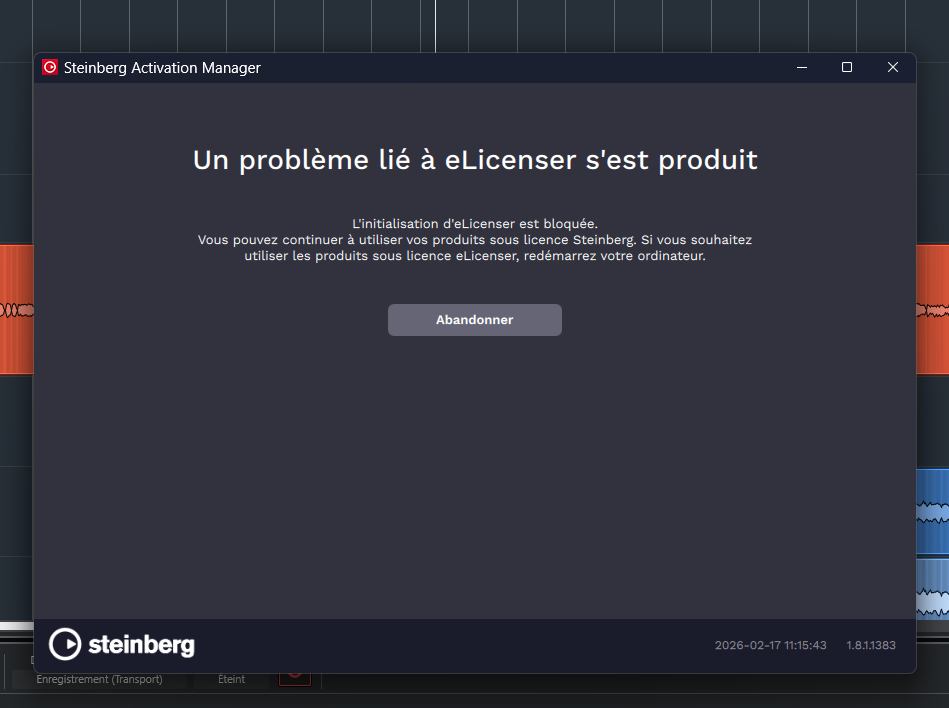 Normalement il devrait elicenser n’est plus supporté, il faut passer sur Steinberg Licensing : Arrêt du service eLicenser en 2025 | Steinberg