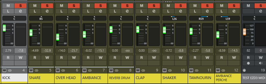 Faisant un export avec la fonction “export midi file” de EZD3, puis en faisan un rendu dur place. Par contre il m’a généré 32 pistes alors que j’en avais besoin que de 9, j’ai donc supprimé les pistes inutiles et j’ai renommé les pistes qui m’intéresse du même nom que celle dans le mixer EZD3. Maintenant je vais essayer de paufiner tout cela.