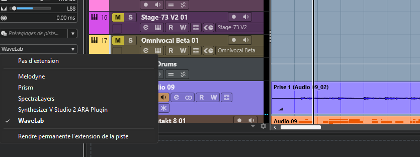 Je n’ai pas trouvé d’extension WaveLab (un clic droit sur un évènement, puis Extensions me renvoie uniquement SpectraLayers et Melodyne) et je n’ai pas trouvé de “version light” à part celle à 99 €.