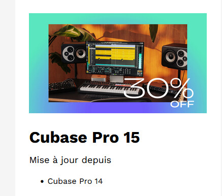 J’ai pris connaissance des différents articles et discussions concernant Cubase Pro15. Steinberg propose actuellement une offre assez intéressante pour une mise à jour de “mon” Cubase Pro14 vers la V15 … la vraie question que je me pose est : Est-ce que ça vaut vraiment le coup de passer sur le V15 ? et est-ce que je ne vais “perdre” certains de mes projets ?