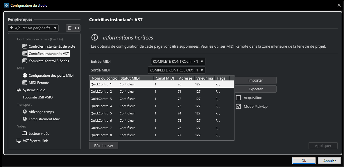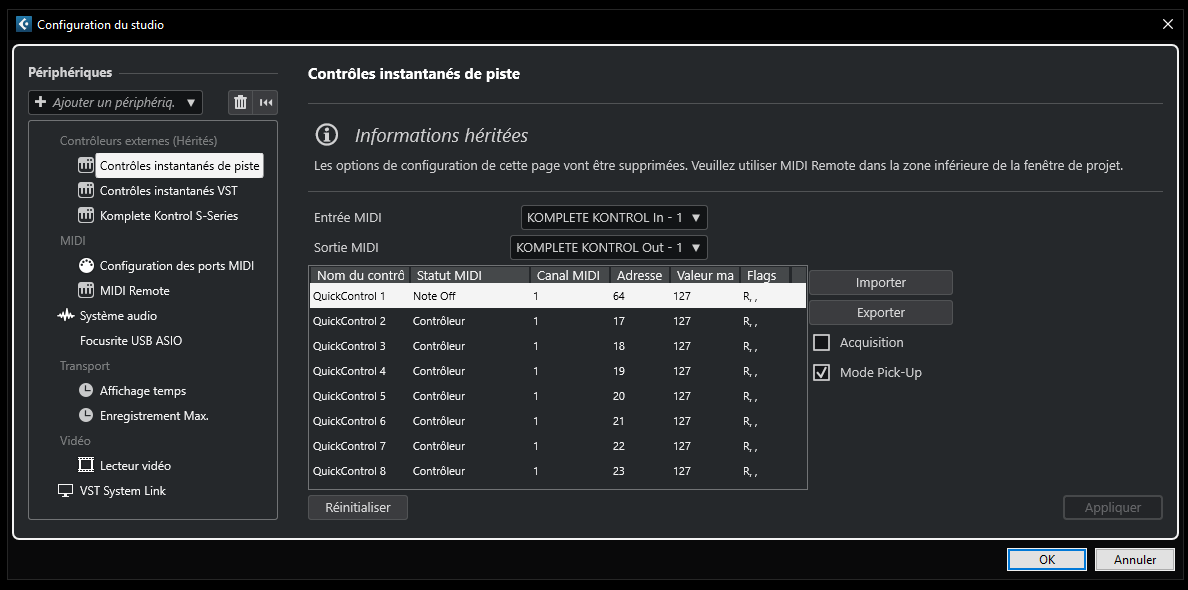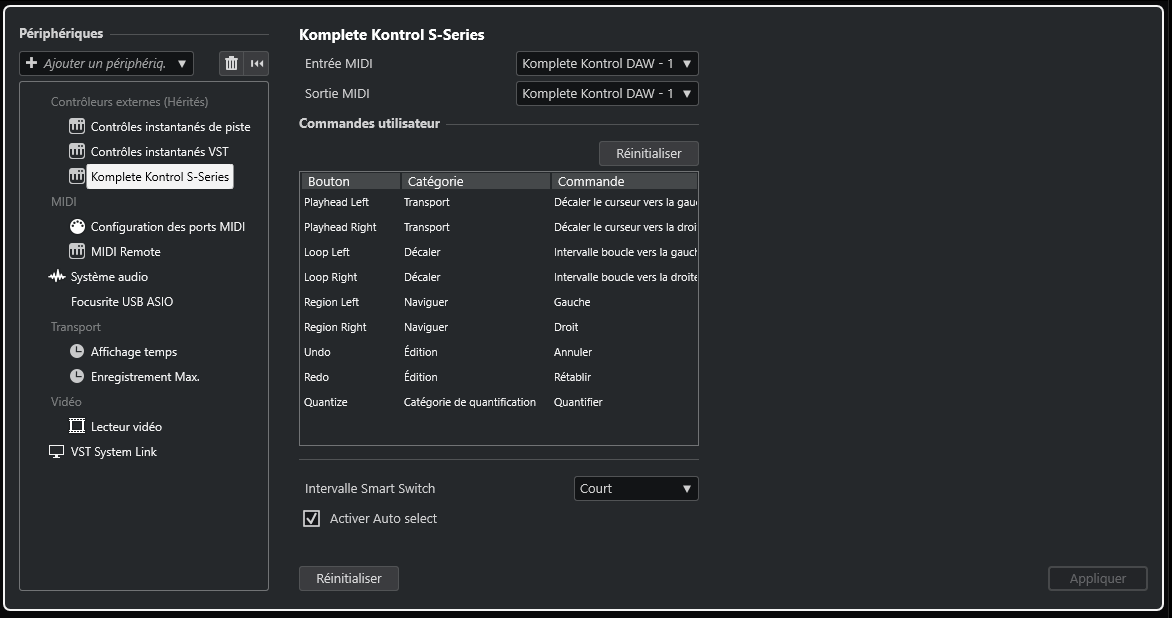 Cubase crée un nouveau dossier de préférences avec les réglages MIDI par défaut.