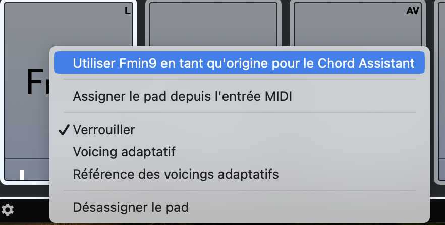 je découvre le pad d’accords. J’aimerais pouvoir faire jouer mes accords en choisissant moi-même les notes qui composent l’accord. Je choisis donc “assigner le pad depuis l’entrée midi”.