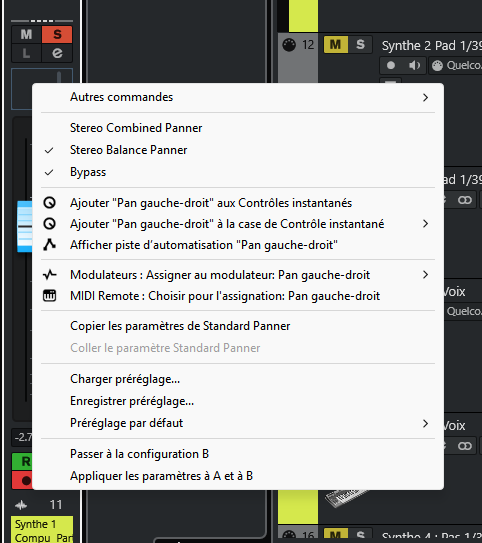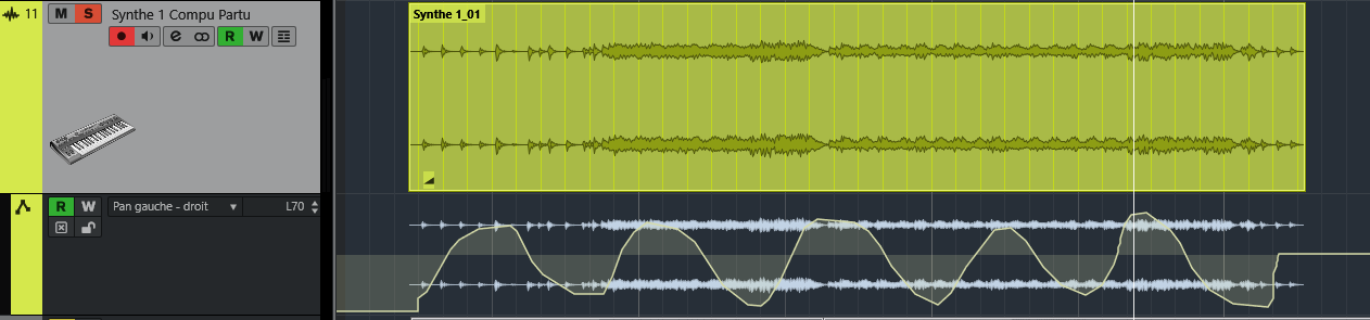 Voilà, je fais du clavier. J’ai enregistré une piste en midi puis, une fois caler toutes mes notes, je l’ai fait repasser dans mon clavier et enregistré en WAV stéréo. Jusqu’ici, pas de problème. Ensuite, je souhaite panner de gauche à droite cette prise wav. Même si l’automation s’écrit bien et que je la voit bien bouger de gauche à droite, je n’entends pas l’effet ! En revanche, si j’exporte cette piste, sur mon bureau par exemple, là j’entends bien l’automation. En gros je n’entends pas l’effet en direct ou en lecture dans cubase. J’ajoute que je laisse bien le R en vert (voir mes captures) ?