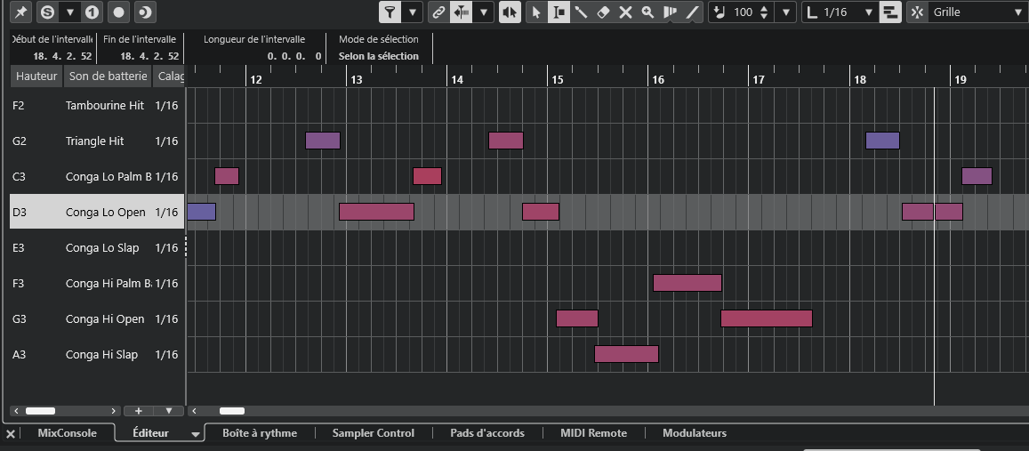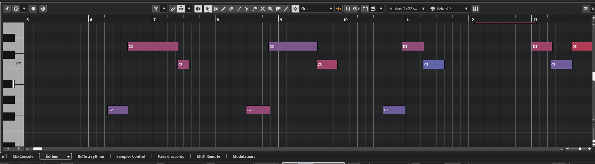 Ensuite quand j’ouvre l’éditeur je suis sous le piano roll de la batterie, y’à un truc qui m’échappe surtout que c’est un template fourni en démo pour ce projet symphonic Orchestra donc déjà pré formaté.