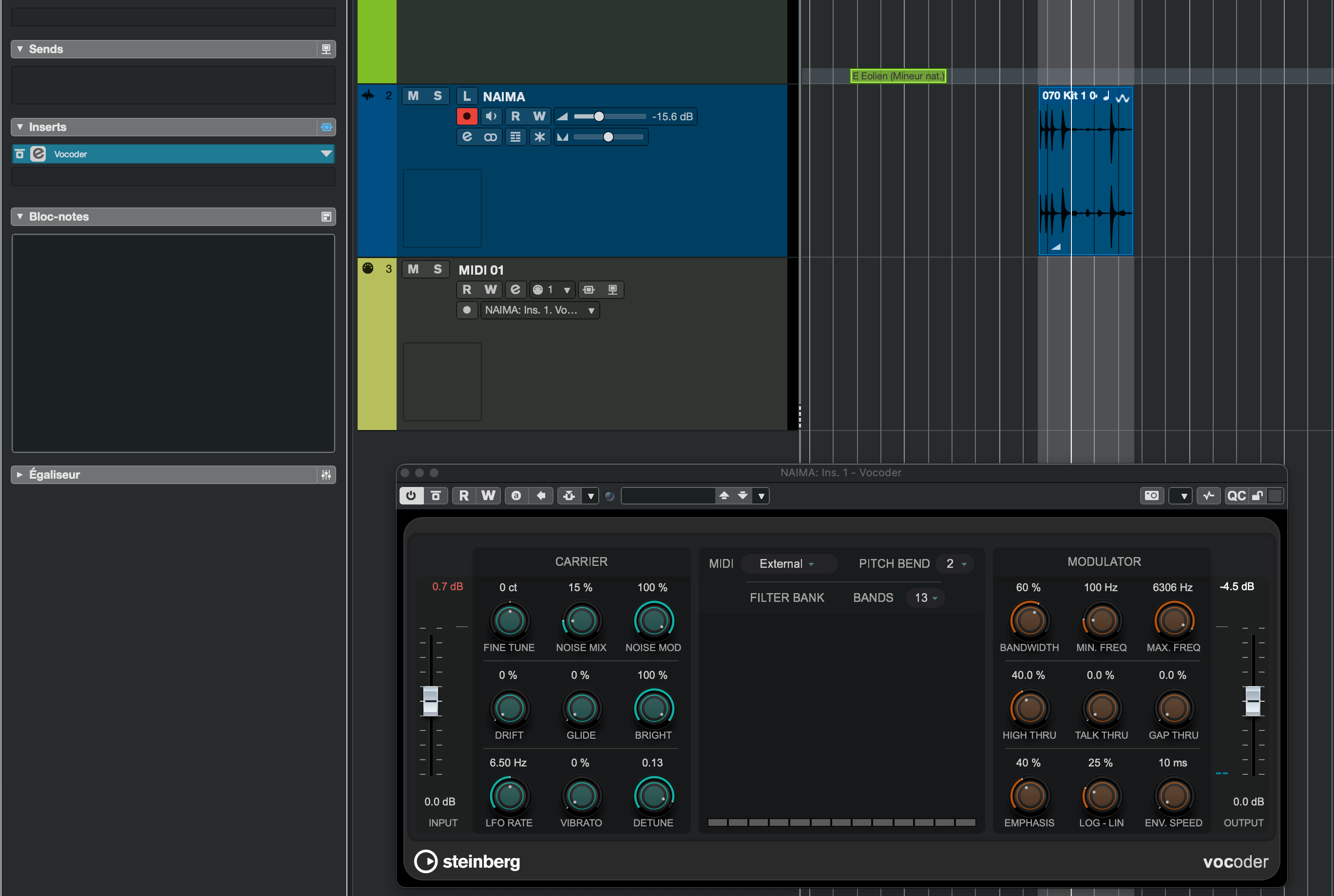 J’ai l’impression que le vocodeur plante. Un coup sur deux, il fonctionne. Pourtant je le paramètre bien, sur une source audio je connecte le vocodeur en insert, dans le vocodeur je me mets en external pour pouvoir y mettre des accords en midi. Je connecte ma piste midi et une fois sur deux ça fonctionne! Quand ça ne fonctionne pas j’ai un reliquat de son foireux. Est ce que ça vous fait cela aussi. ? J’ai essayé avec le TAL VOCODER gratis et aucun bug !!!